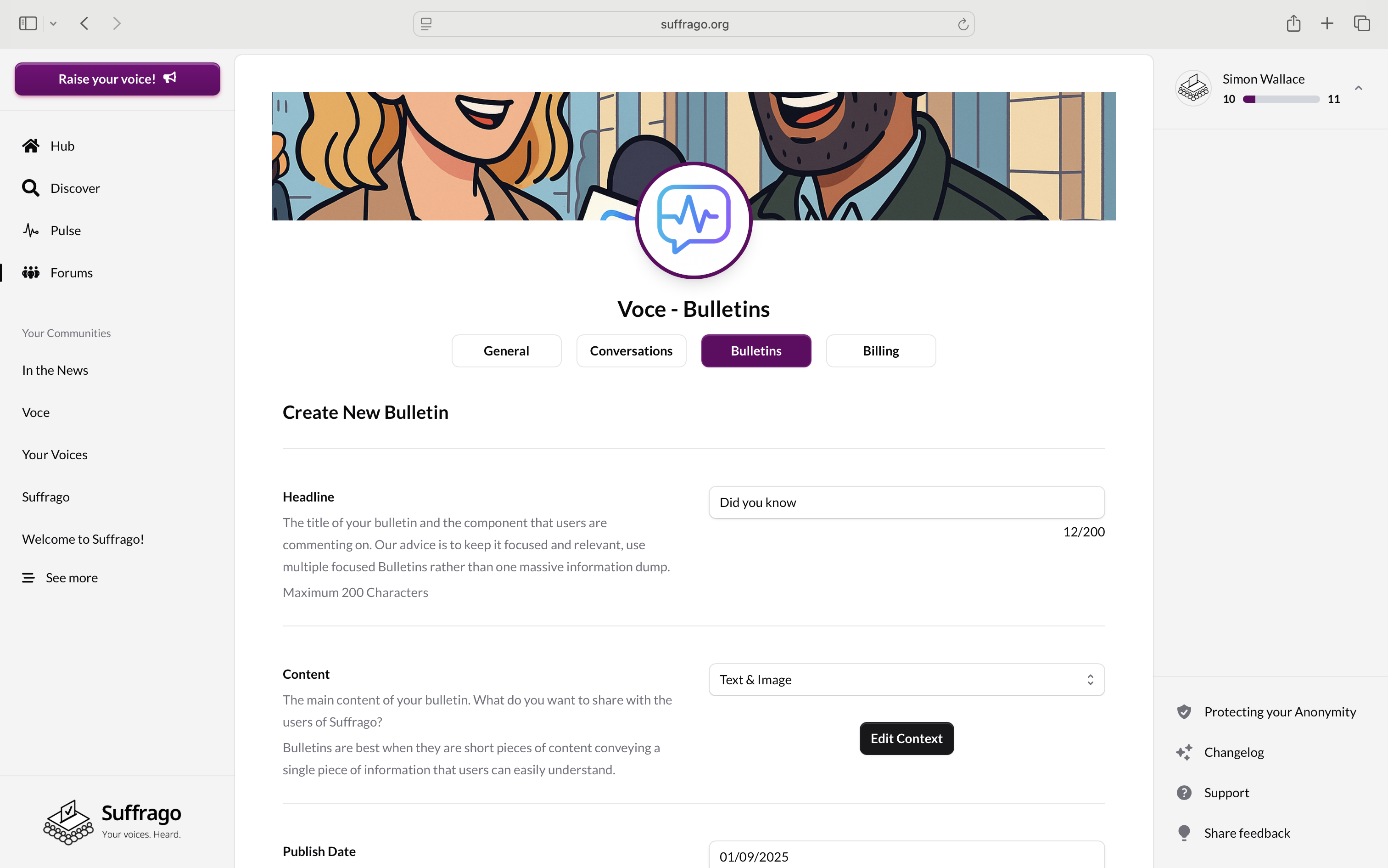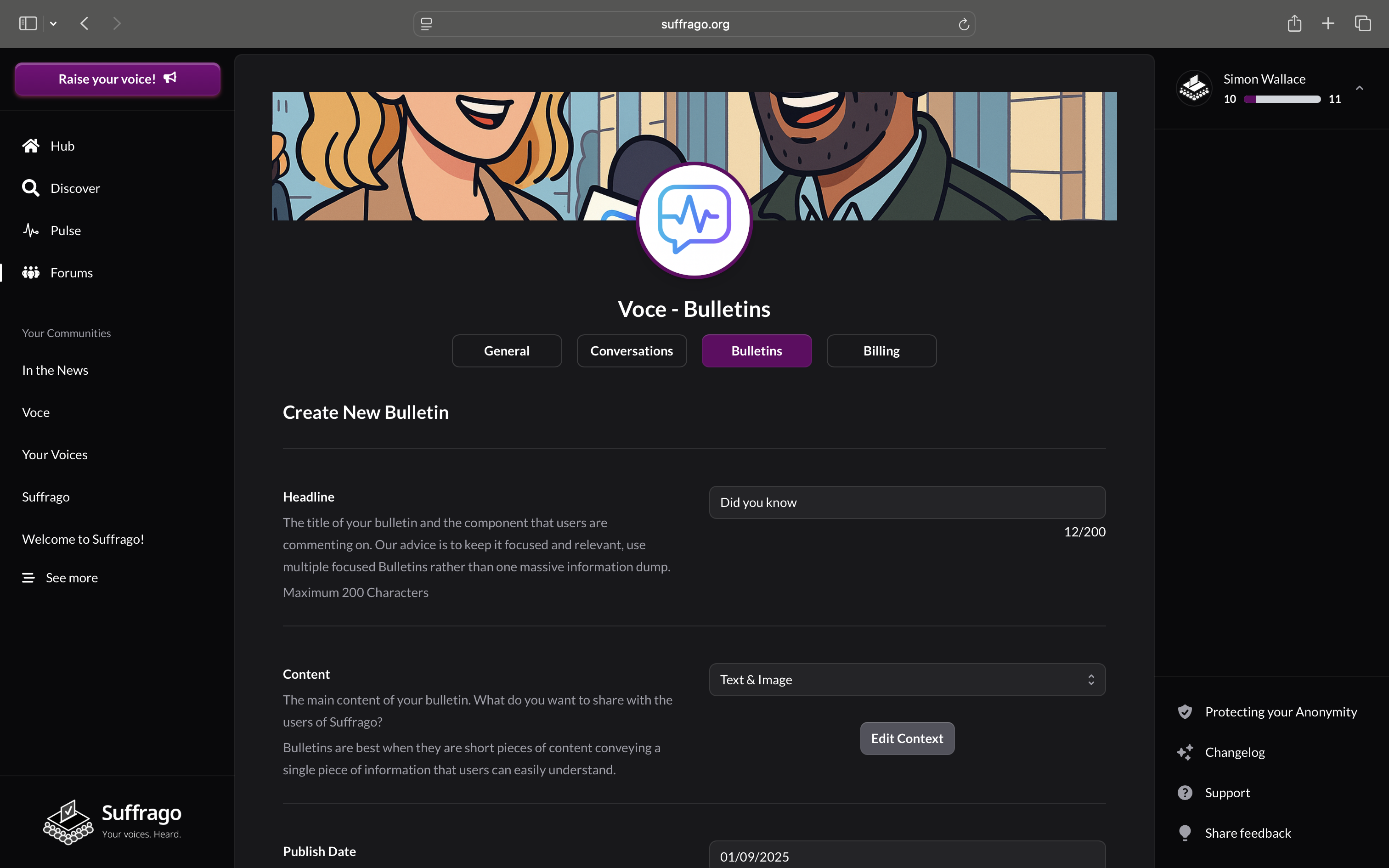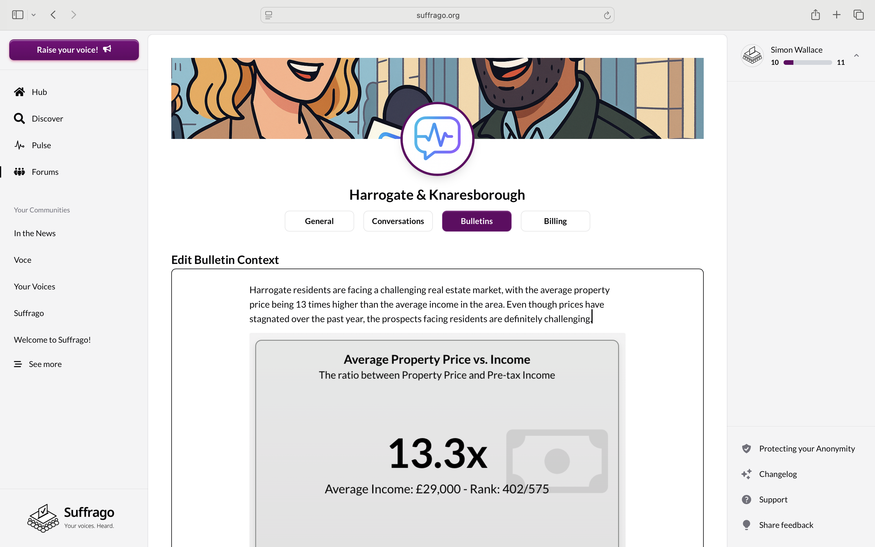 Building a community with Suffrago's Forums gives you the ability to not only listen to the voice of the people any time you want, but also act upon it.